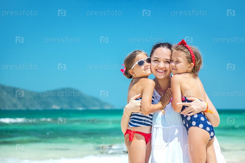 Мама с дочерьми на пляже