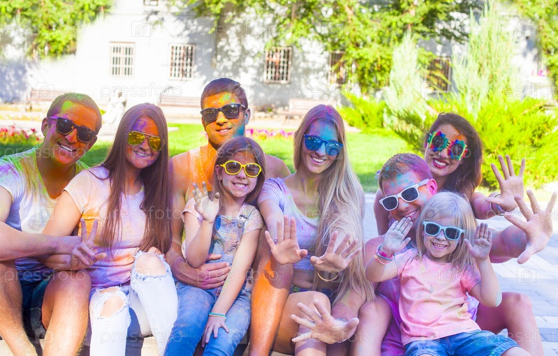 Счастливые друзья на фестивале Холи