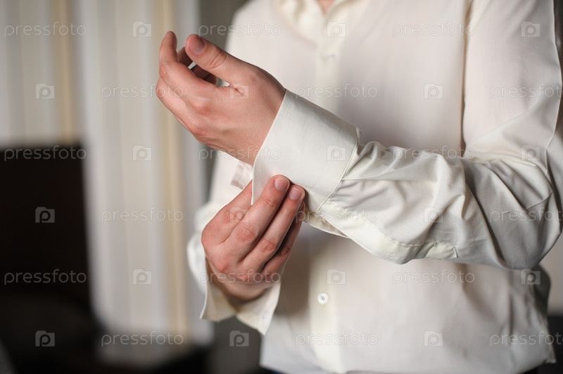 Мужчина одевает запонки