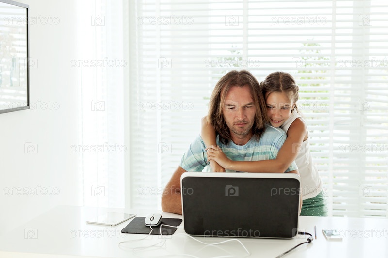 Отец с дочерью за ноутбуком