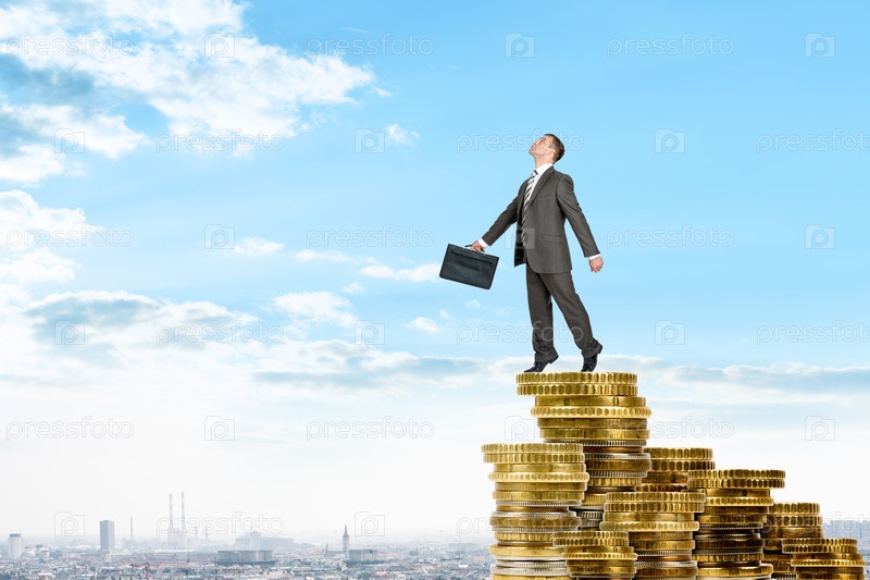 Бизнесмен на куче монет