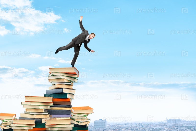 Бизнесмен на куче книг
