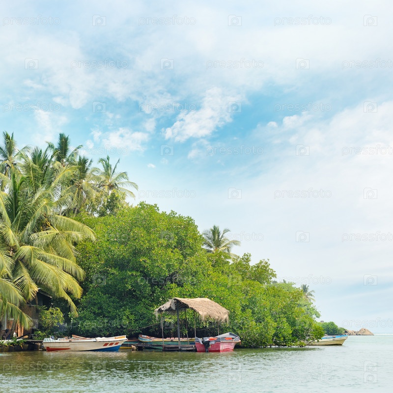 Экваториальный лес и лодки на озере