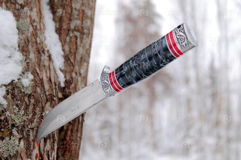 Охотничий нож в стволе дерева