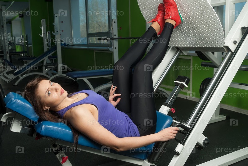 Привлекательная женщина занимается в тренажерном зале