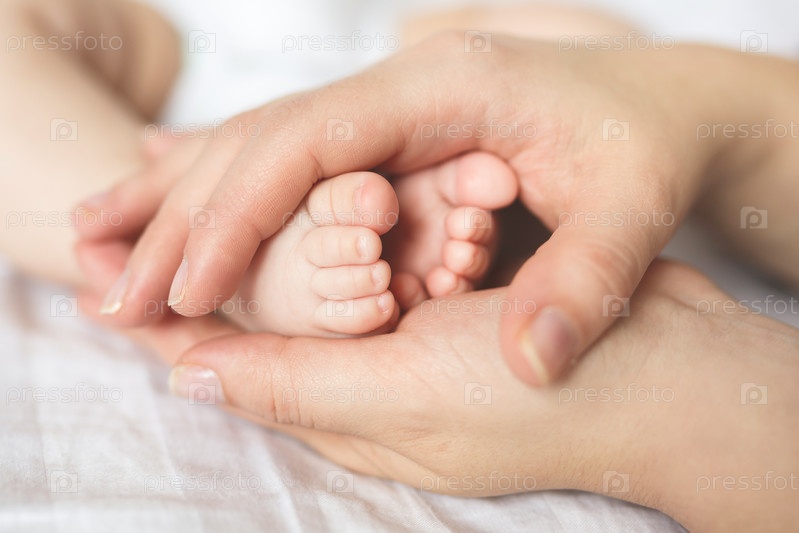 Ноги ребенка в руках матери