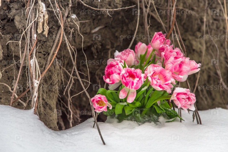 Свежие цветы в снегу