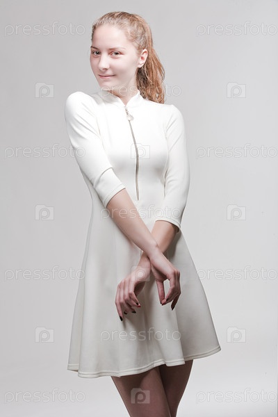 Красивая молодая девушка в белом платье