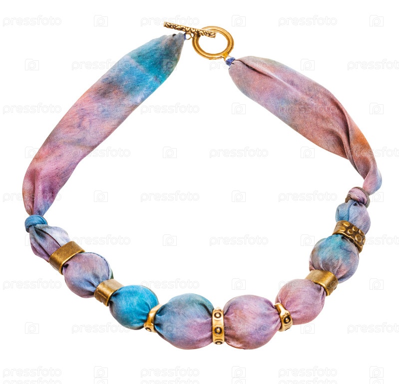 Ожерелье из розового шелка и бронзового бисера