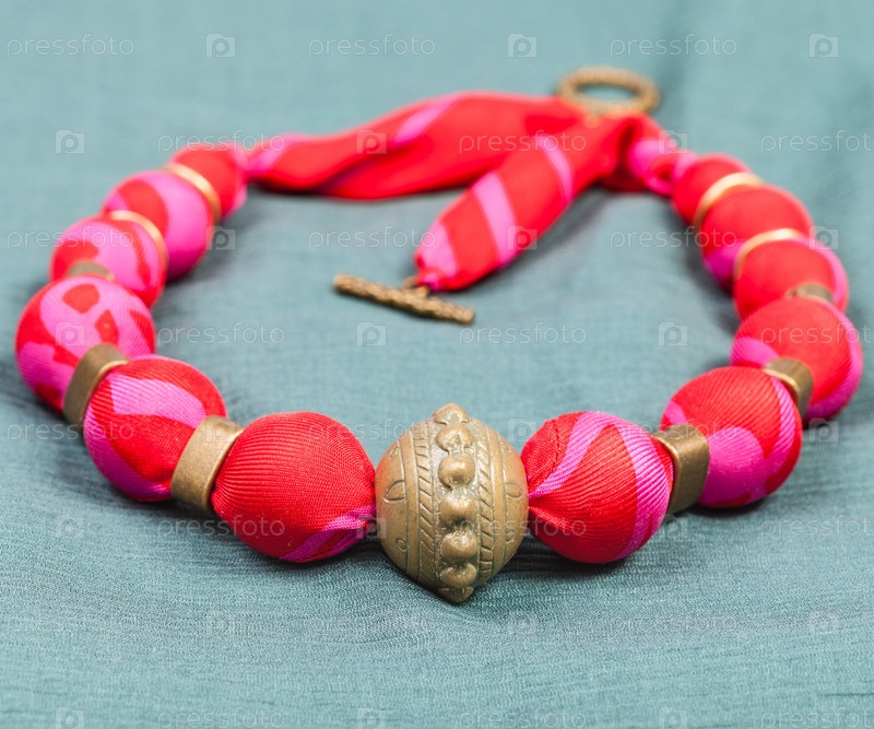 Колье из красного шелка