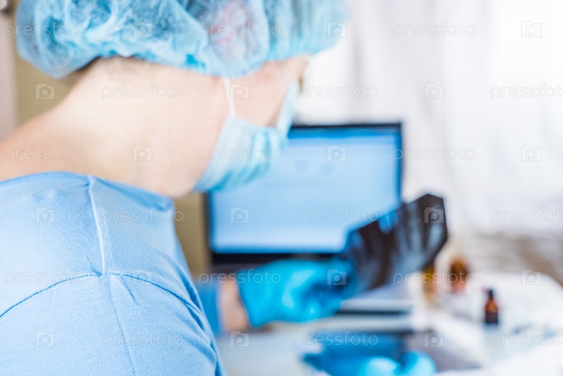 Женщина-врач смотрит на рентген