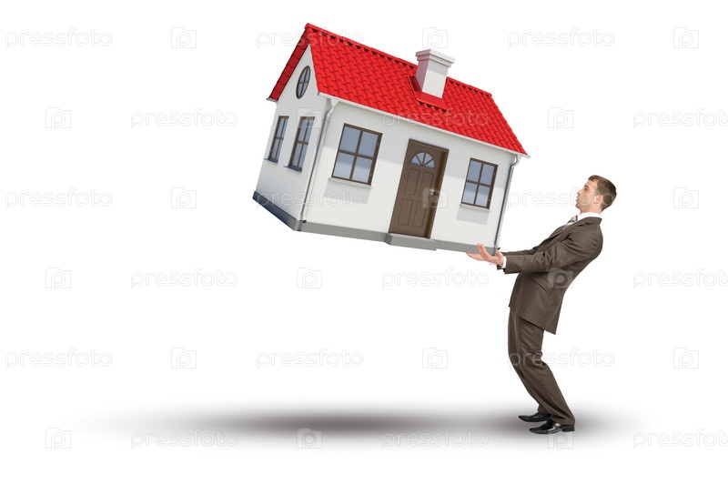 Бизнесмен, удерживая большой дом