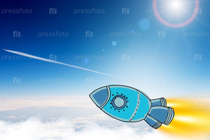 Космическая ракета пролетает над облаками