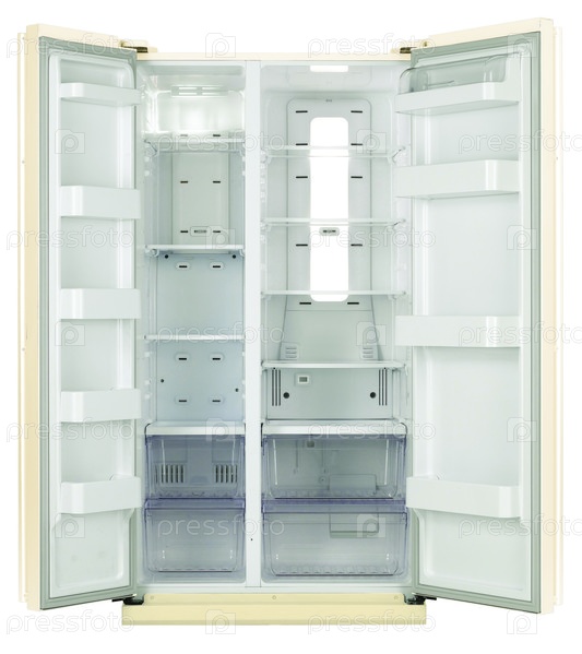 холодильник на белом фоне