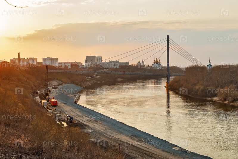 Строительство пешеходной набережной в Тюмени