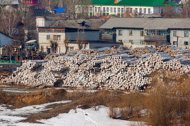 Бревна на фанерном комбинате