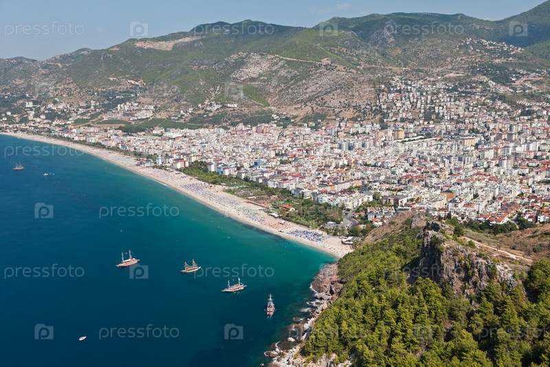 Морской курорт клеопатра в алании на средиземном море, турция. вид со стен замка
