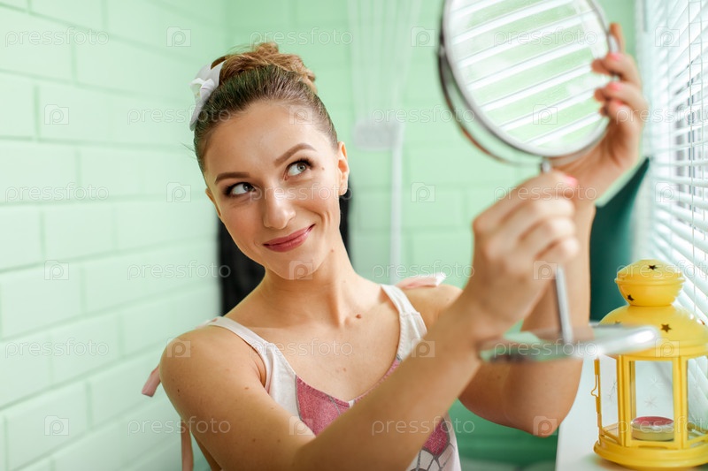 Девушка смотрится в зеркало