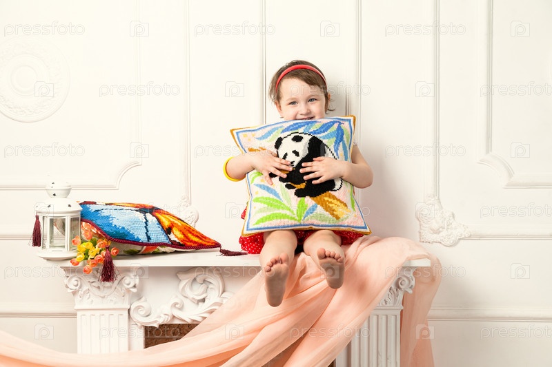 Маленькая девочка сидит на камине