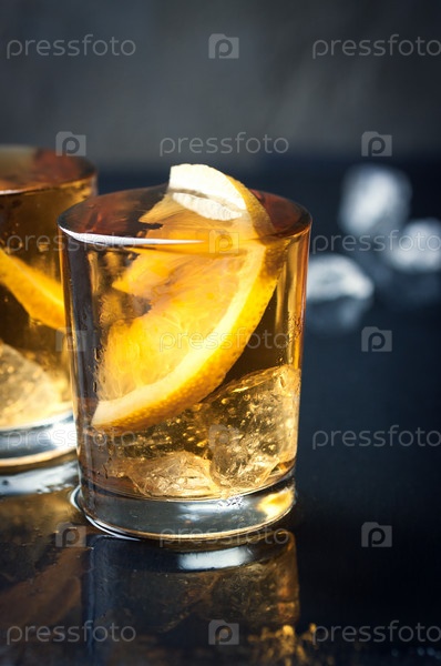 Коктейль с виски, лимоном и льдом