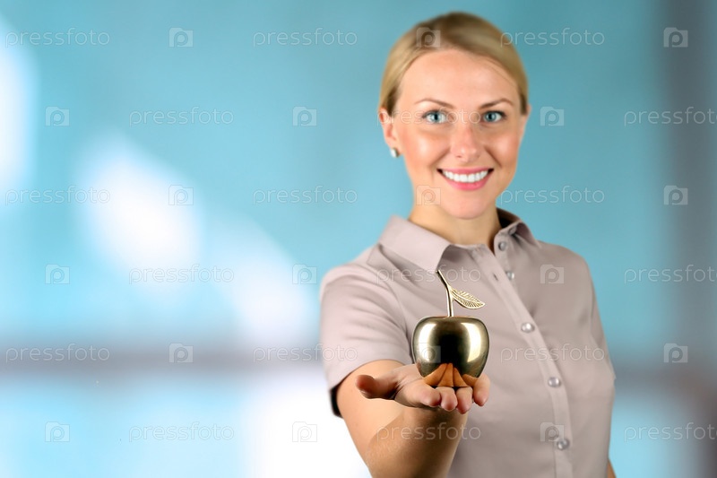 Деловая женщина с золотым яблоком