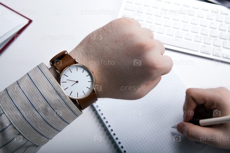 Офисный работник смотрит на часы