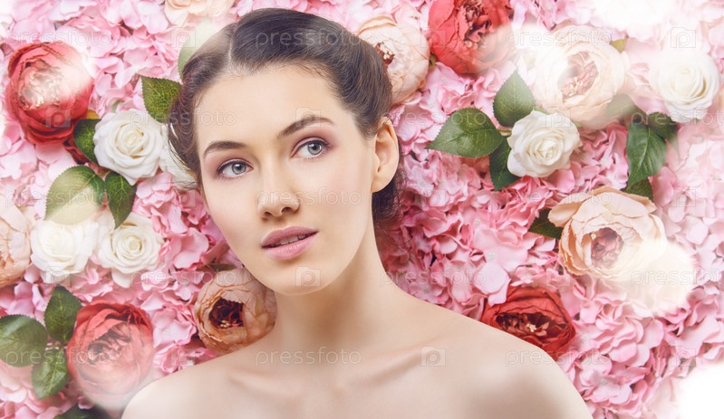 Женщина на фоне цветов