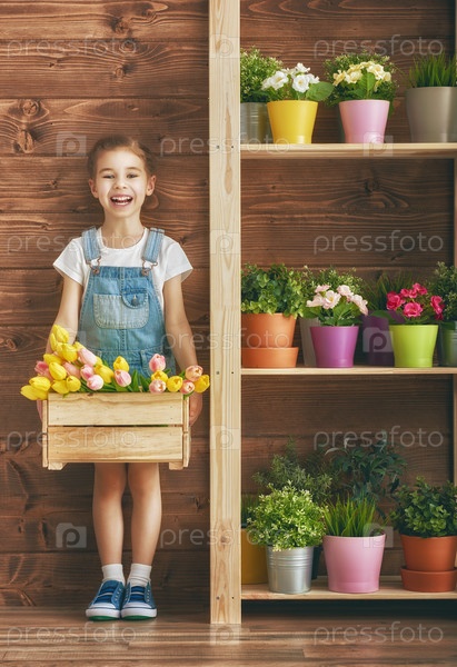 Девочка с ящиком тюльпанов