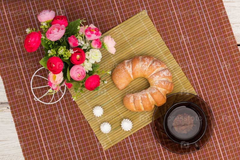 Круассан, чай и цветы
