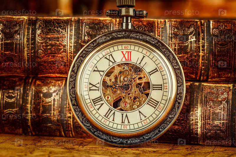 Старые книги и старинные карманные часы