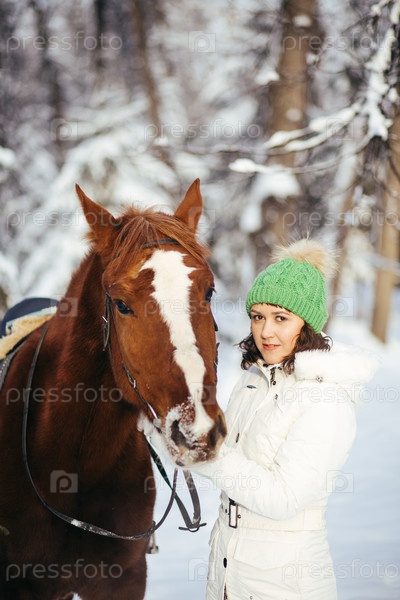 Красивая девушка и лошадь в зимний период