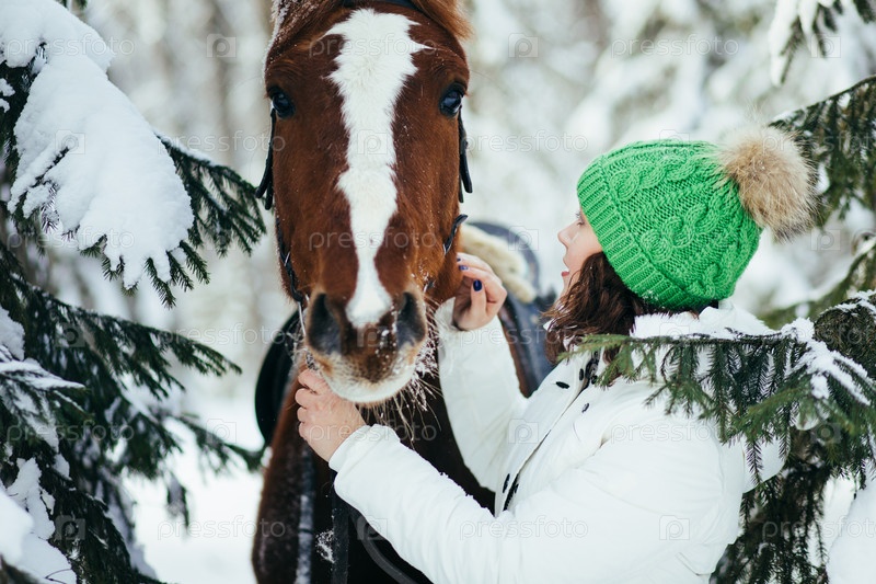 Красивая девушка и лошадь в зимний период