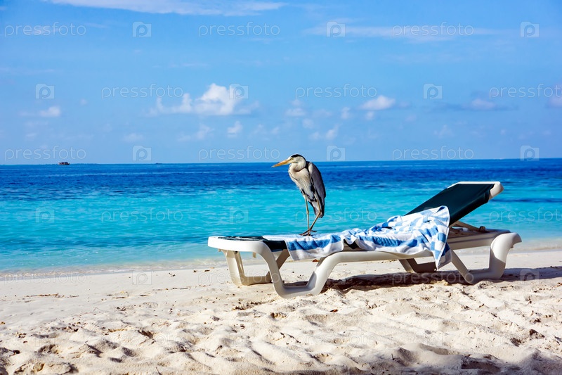 Серая цапля на шезлонге