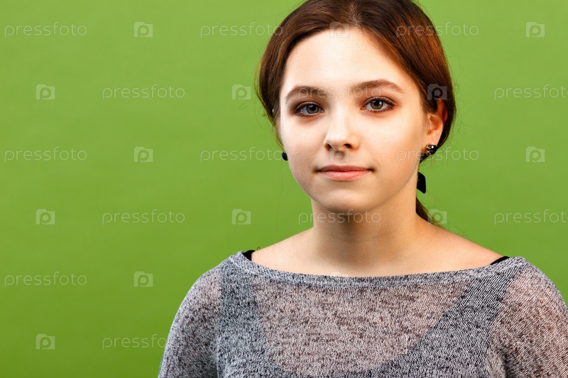 Девочка-подросток на зеленом фоне