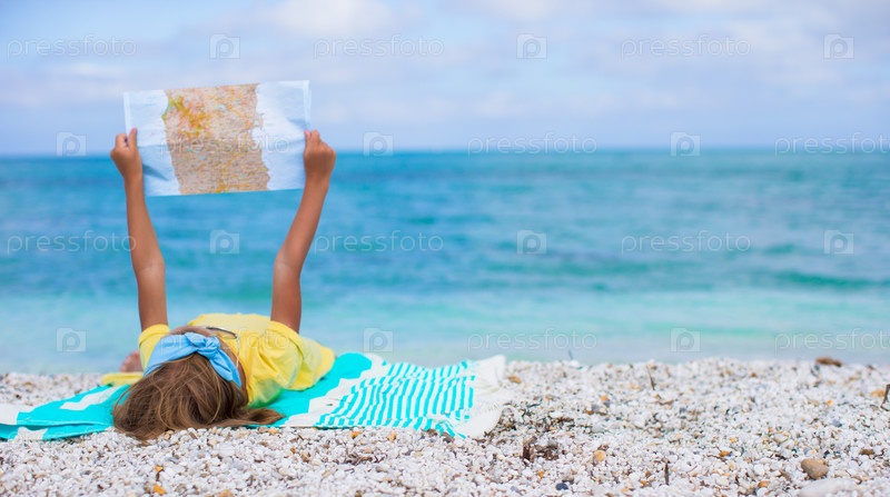 Девочка с картой на пляже