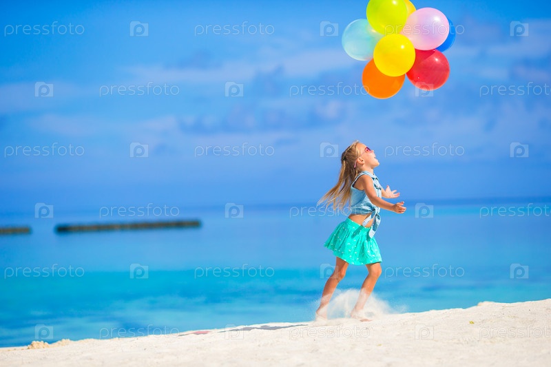 Девочка с воздушными шариками на пляже