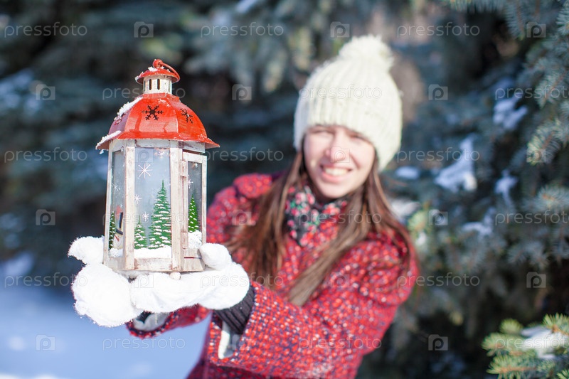 Девушка с рождественским фонариком