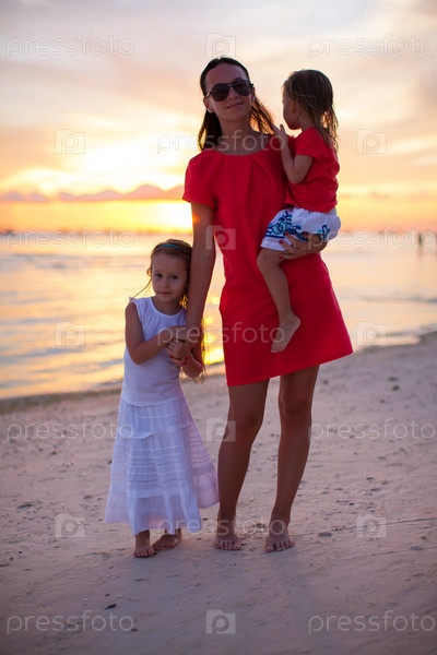 Мать с дочерьми на фоне заката