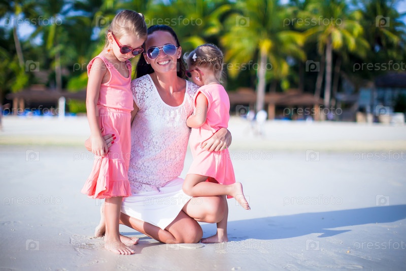 Мать с дочерьми на пляже