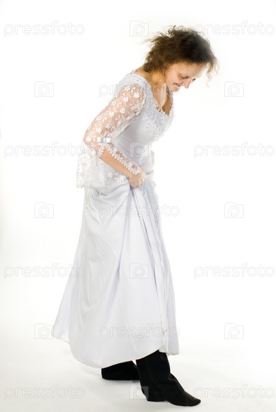 Девушка в свадебном платье на белом фоне