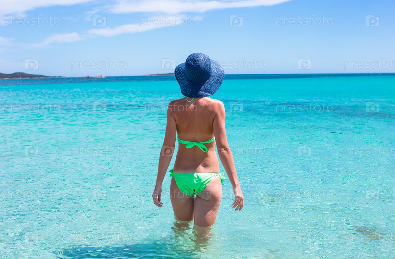 Молодая женщина заходит в воду