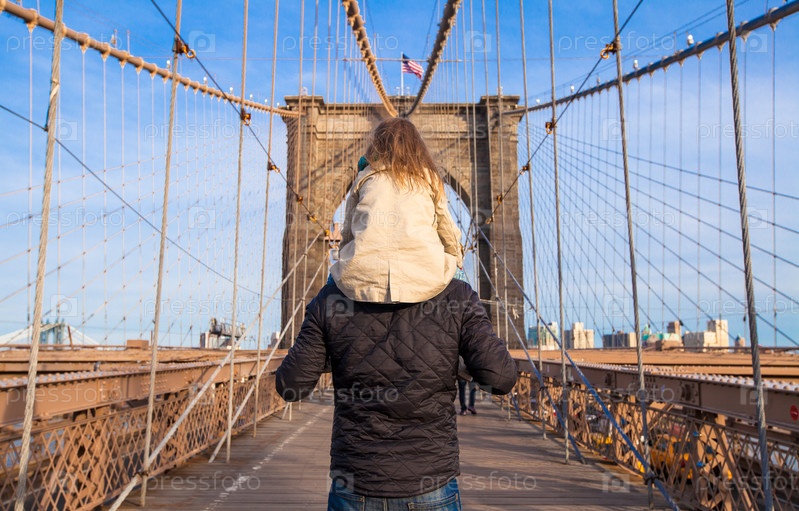 Отец с дочкой на Бруклинском мосту