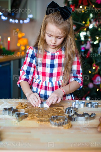 Маленькая девочка готовит рождественское печенье