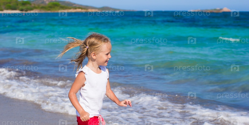 Маленькая девочка бежит по пляжу