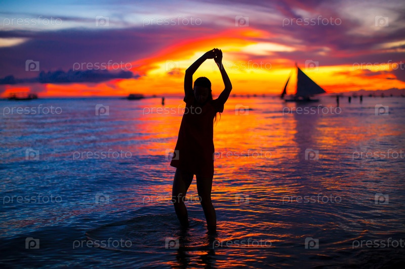 Молодая красивая женщина на фоне заката