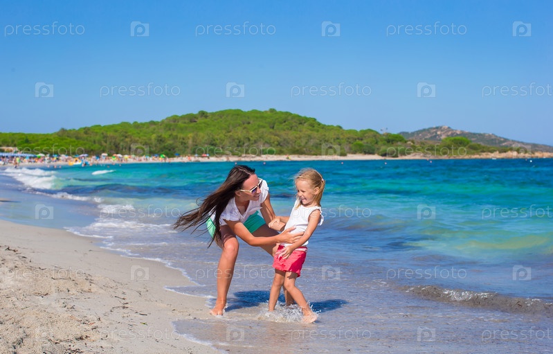 Мать с дочерью на пляже