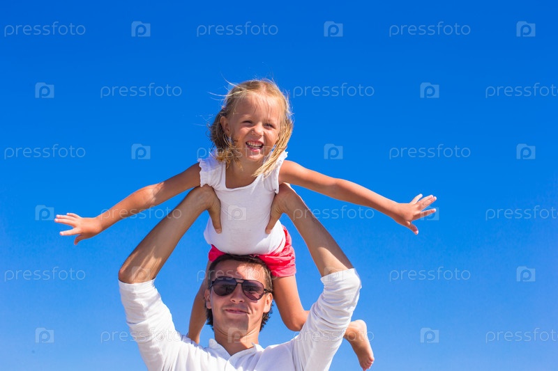 Отец с дочкой на фоне неба