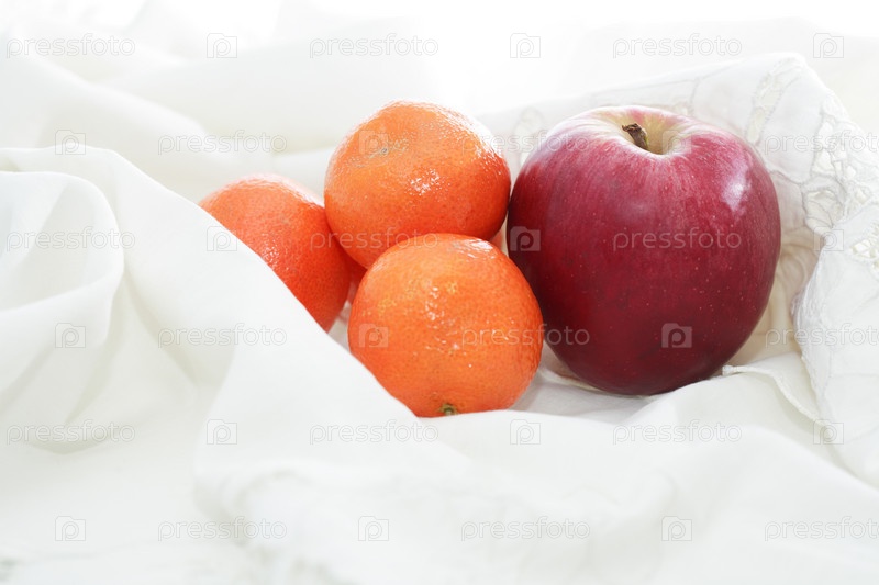 Фрукты на белой ткани