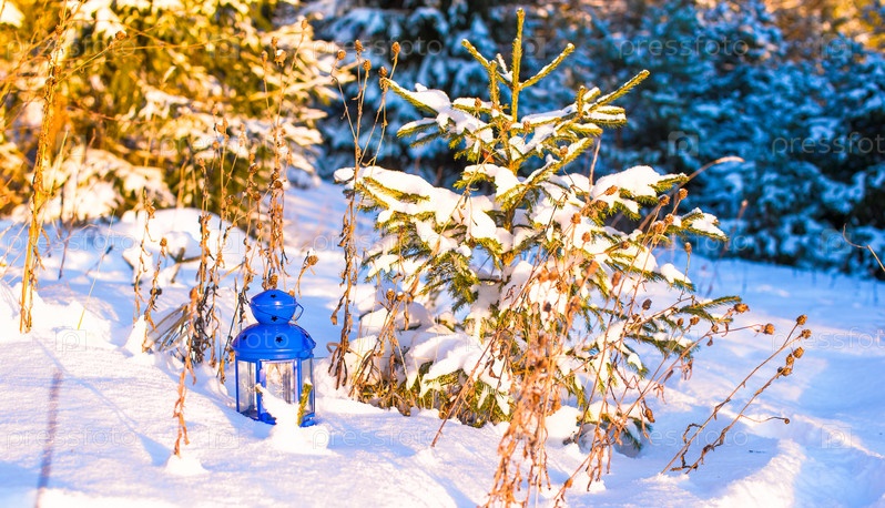 Синий фонарь на снегу