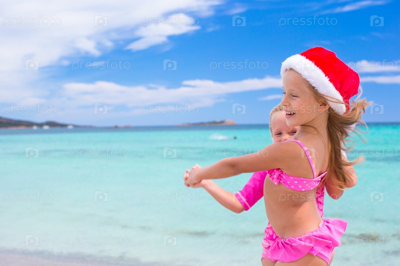 Очаровательные сестренки встречают Рождество на пляже